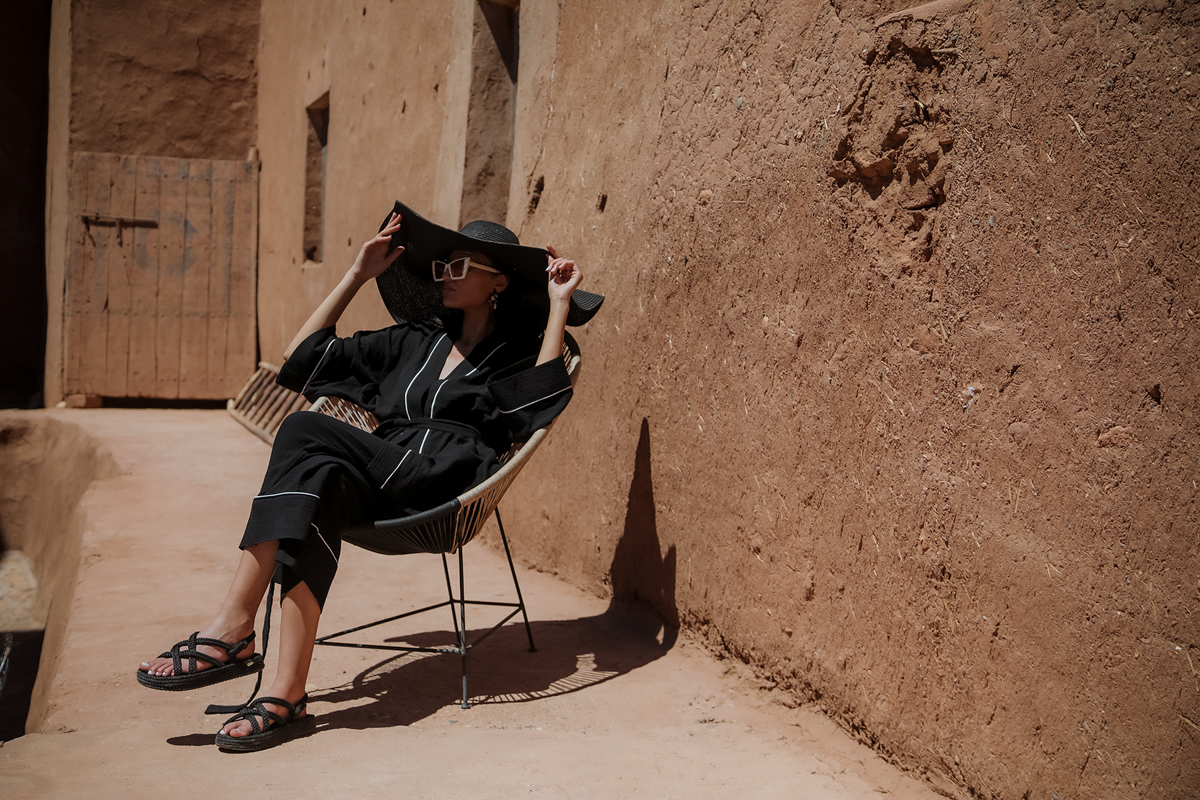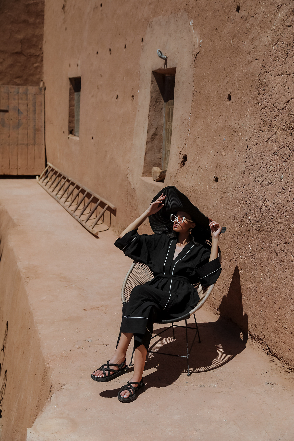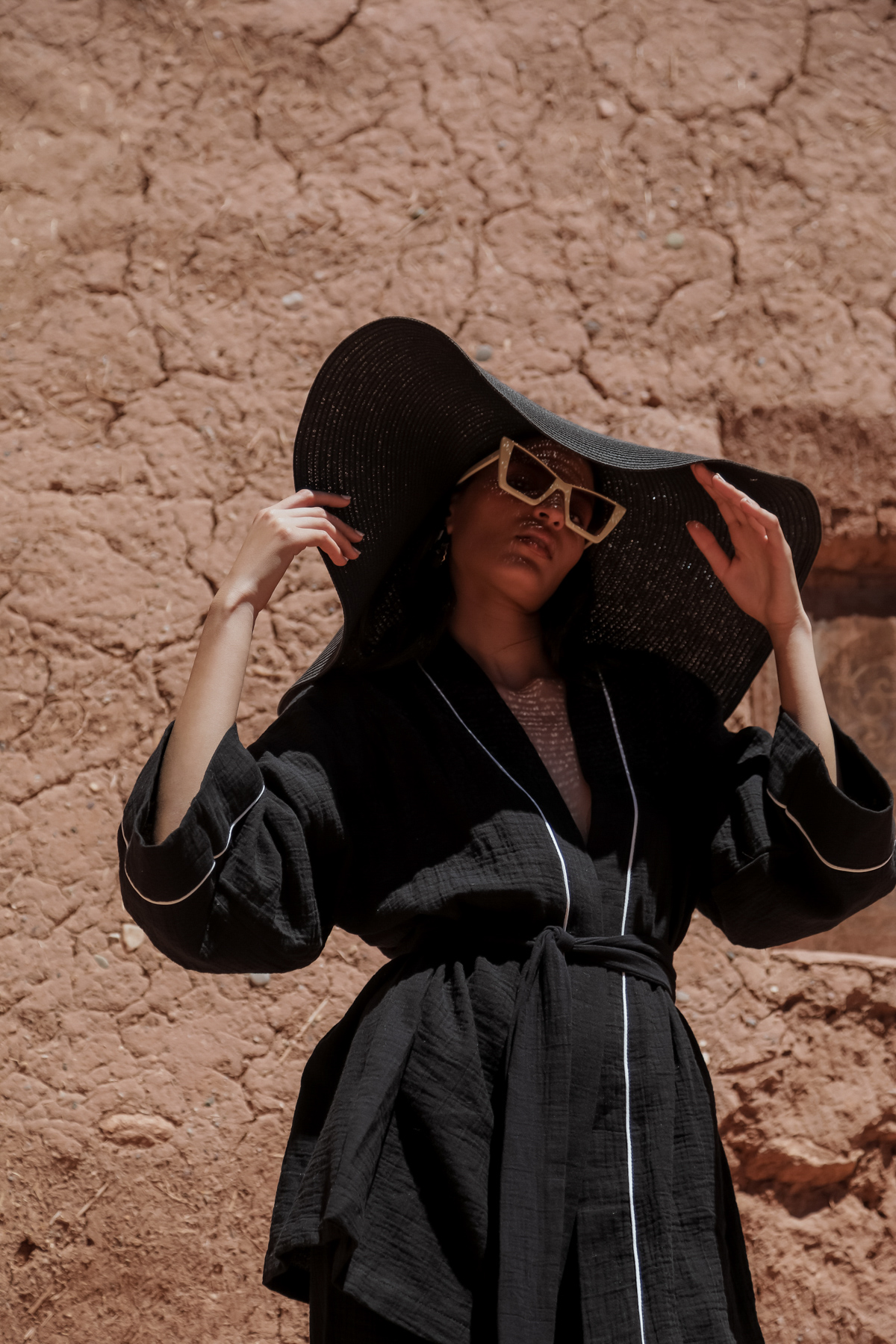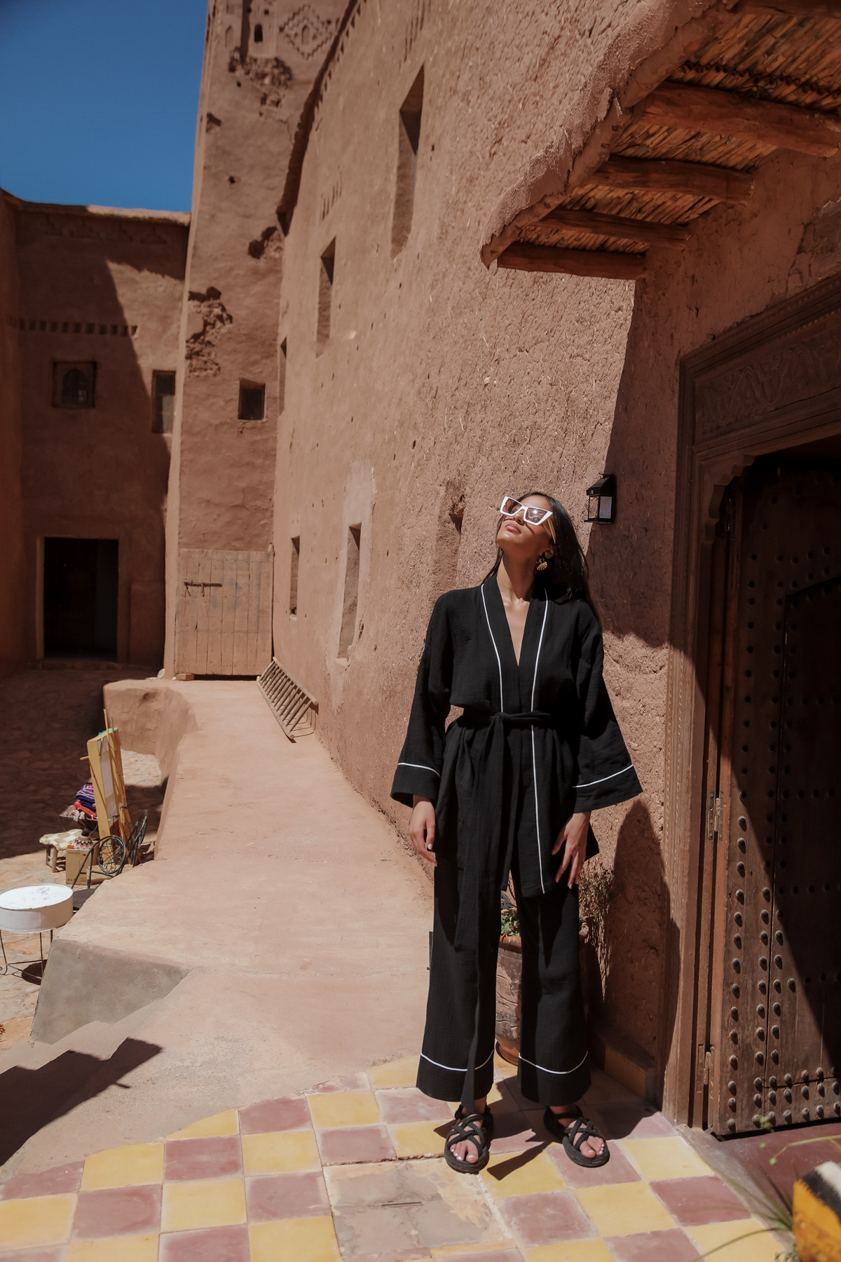 AMİRA Kısa Kimono ve Pantolon Takımı ile şıklığı tamamlayabilirsiniz. Yumuşak %100 Pamuk kumaşın ferahlığını hissedin ve siyah renk ile zarif ve sade bir görünüm elde edin. Pamuk biye detaylı tasarımı ile şıklığınıza şıklık katarken, Aït Benhaddou'nun büyüleyici havasıyla ruhunuza bir ziyafet çekin. AMİRA Kısa Kimono ve Pantolon Takımı, günlük hayatınızda ve özel günlerinizde keyifle kullanabileceğiniz mükemmel bir parçadır. JessyWell'in Marrakech Reverie SS24 koleksiyonunun bir parçası olan bu ürün ile "Özgür ol, kendin ol, doğayla uyum içinde ol." sloganını yaşayın.