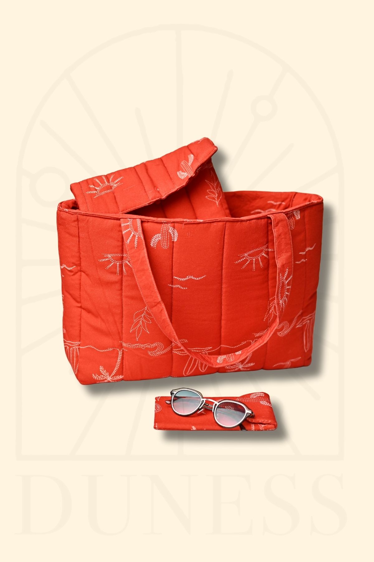 Üstelik sadece bir çanta değil — birlikte uyumlu iPad kılıfı ve gözlük kılıfıyla tamamlanmış bir 3’lü set.