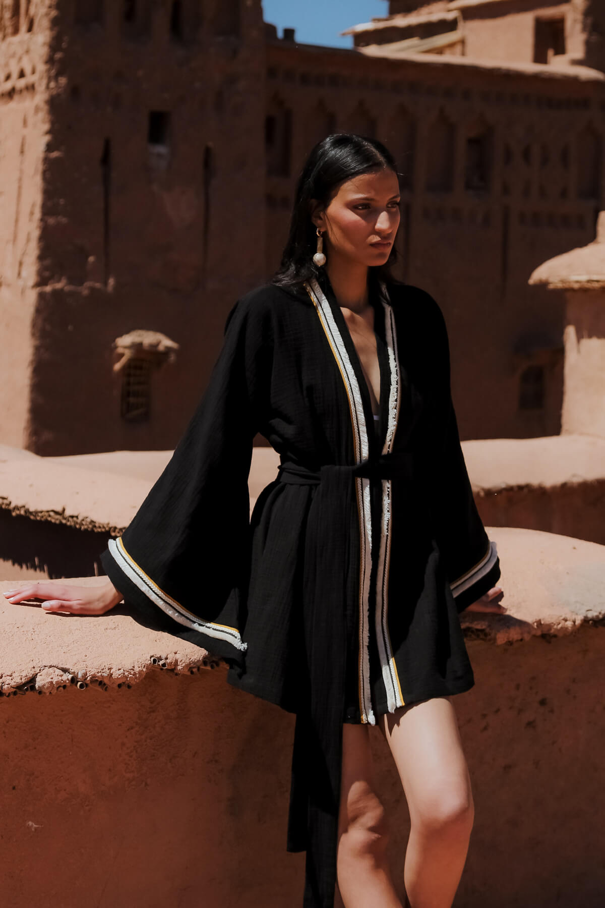 JANNA %100 Pamuk Siyah Kısa Kimono