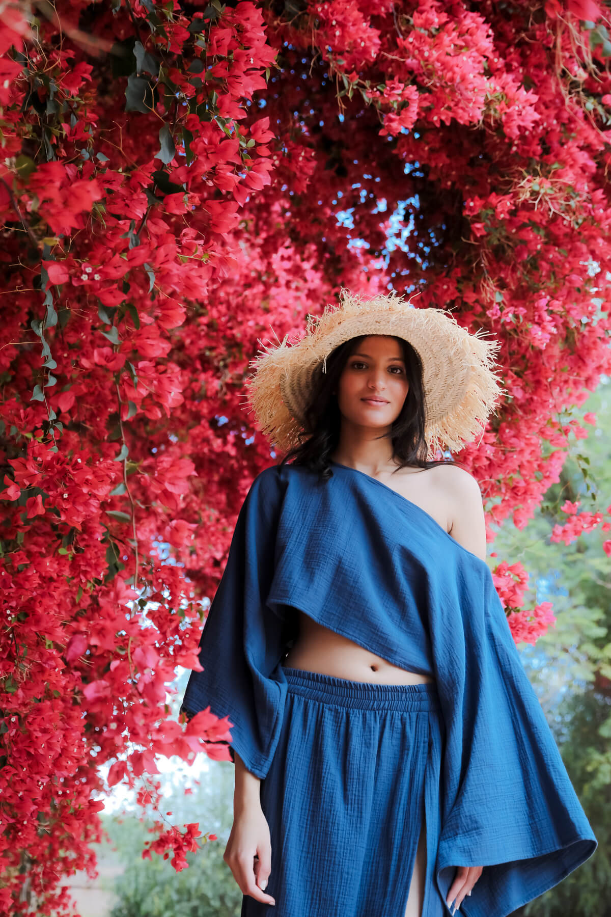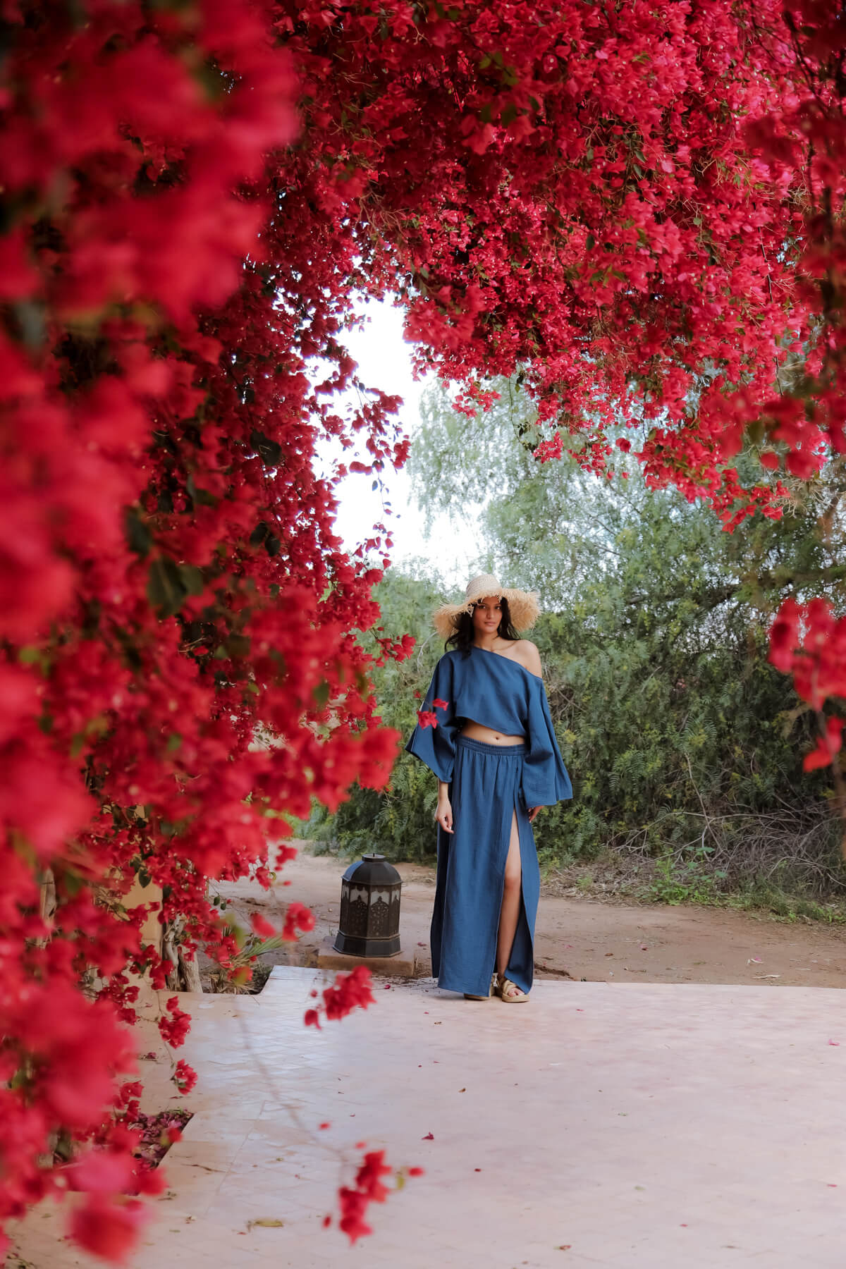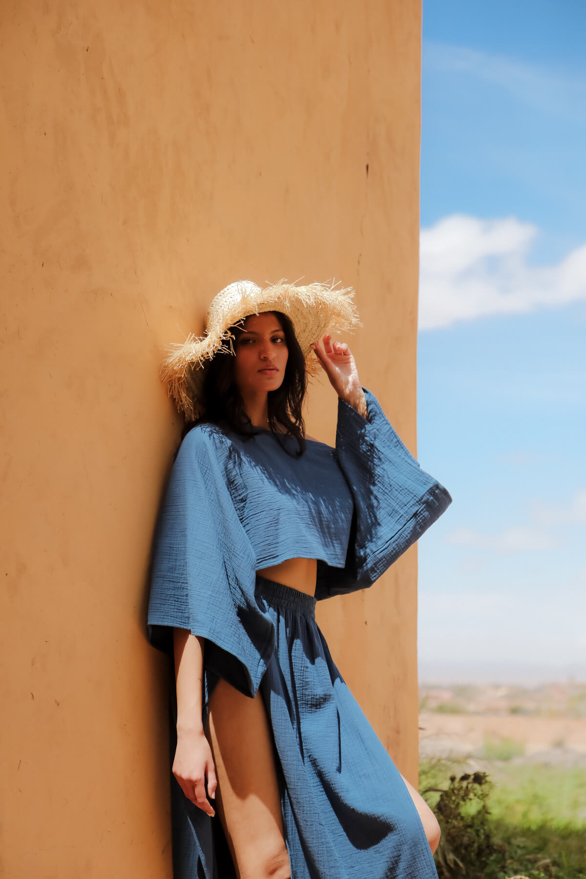 Marakeş'in büyülü atmosferini hissetmeye hazır mısınız? LEILA Pamuk Crop ve Yırtmaçlı Etek Takımı ile serin ve konforlu bir yaz stili yaratabilirsiniz. Yumuşak %100 Pamuk kumaşın ferahlığını hissedin ve indigo renk ile zarif ve sade bir görünüm elde edin. Tasarımı ile şıklığınıza şıklık katarken, Marakeş Palace'ın büyüleyici havasıyla ruhunuza bir ziyafet çekin. LEILA Pamuk Crop ve Yırtmaçlı Etek Takımı, günlük hayatınızda ve özel günlerinizde keyifle kullanabileceğiniz mükemmel bir parçadır. JessyWell'in Marrakech Reverie SS24 koleksiyonunun bir parçası olan bu ürün ile "Özgür ol, kendin ol, doğayla uyum içinde ol." sloganını yaşayın.