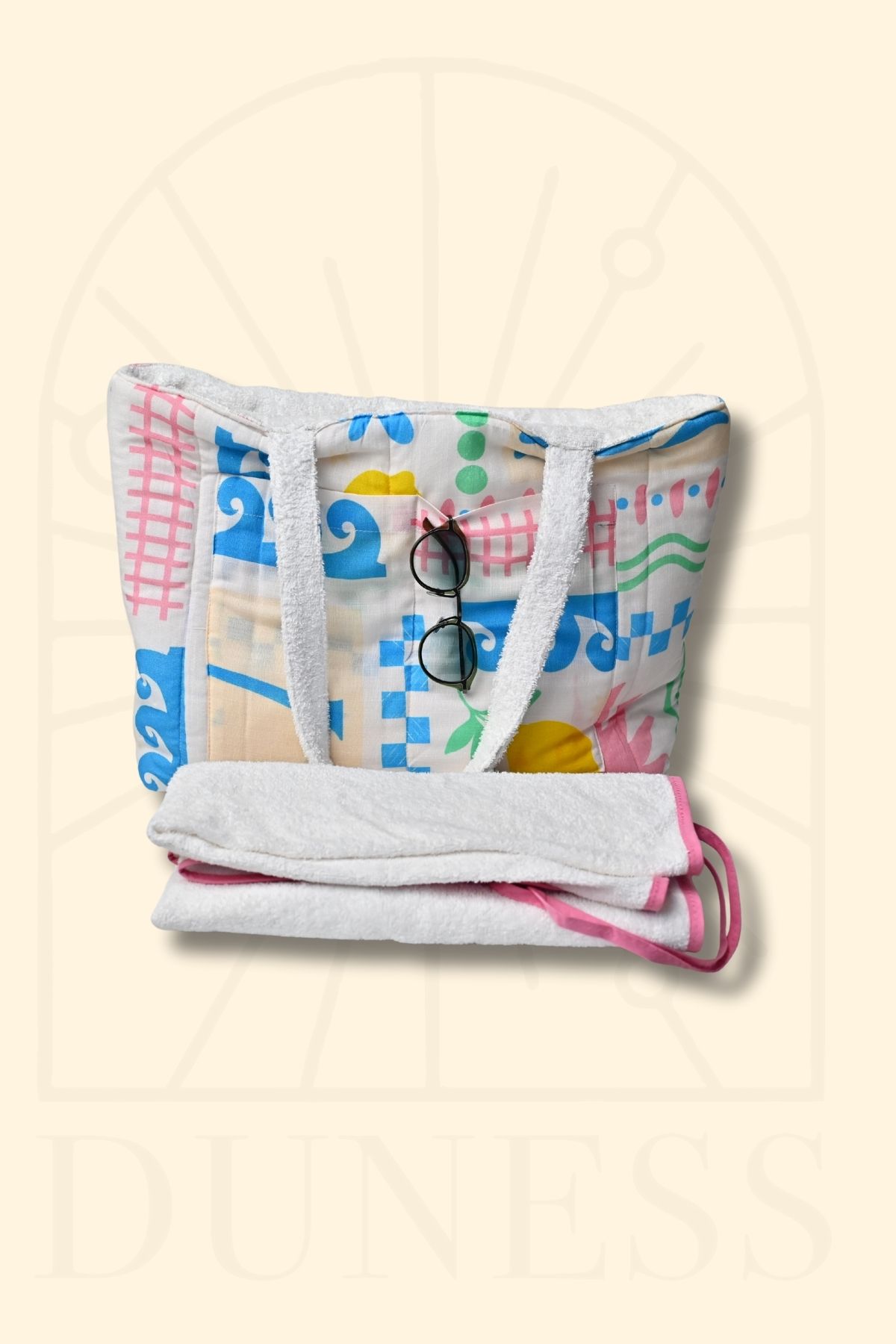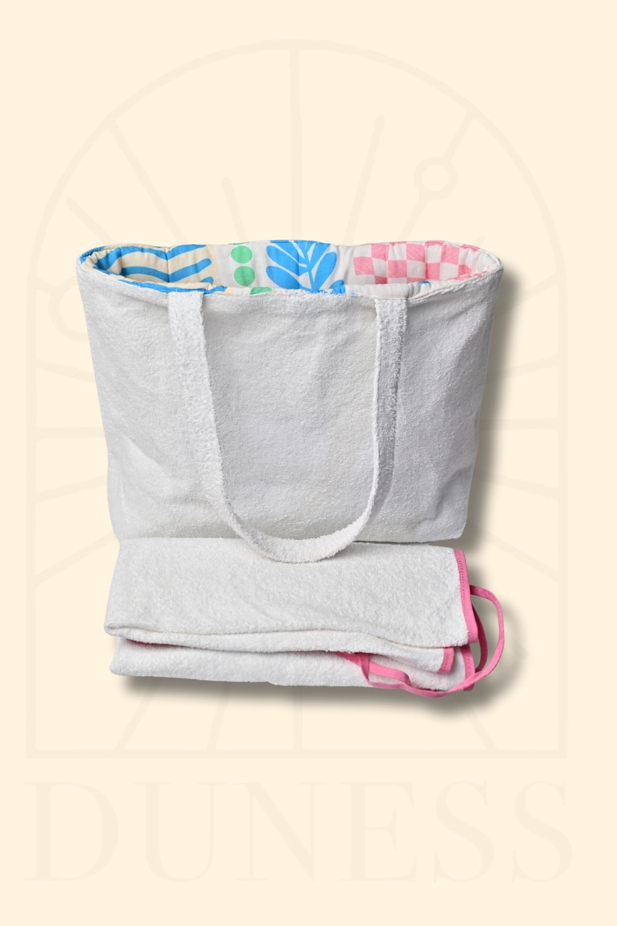 Yumuşacık havlu dokusu, doğal pamuk astarı ve geniş iç hacmiyle her an yanında. Plajda, şehirde ya da yolda... Güneşin altında, bir kitap ve birkaç sevdiğin eşya kadar hafif hissettiren bir çanta.