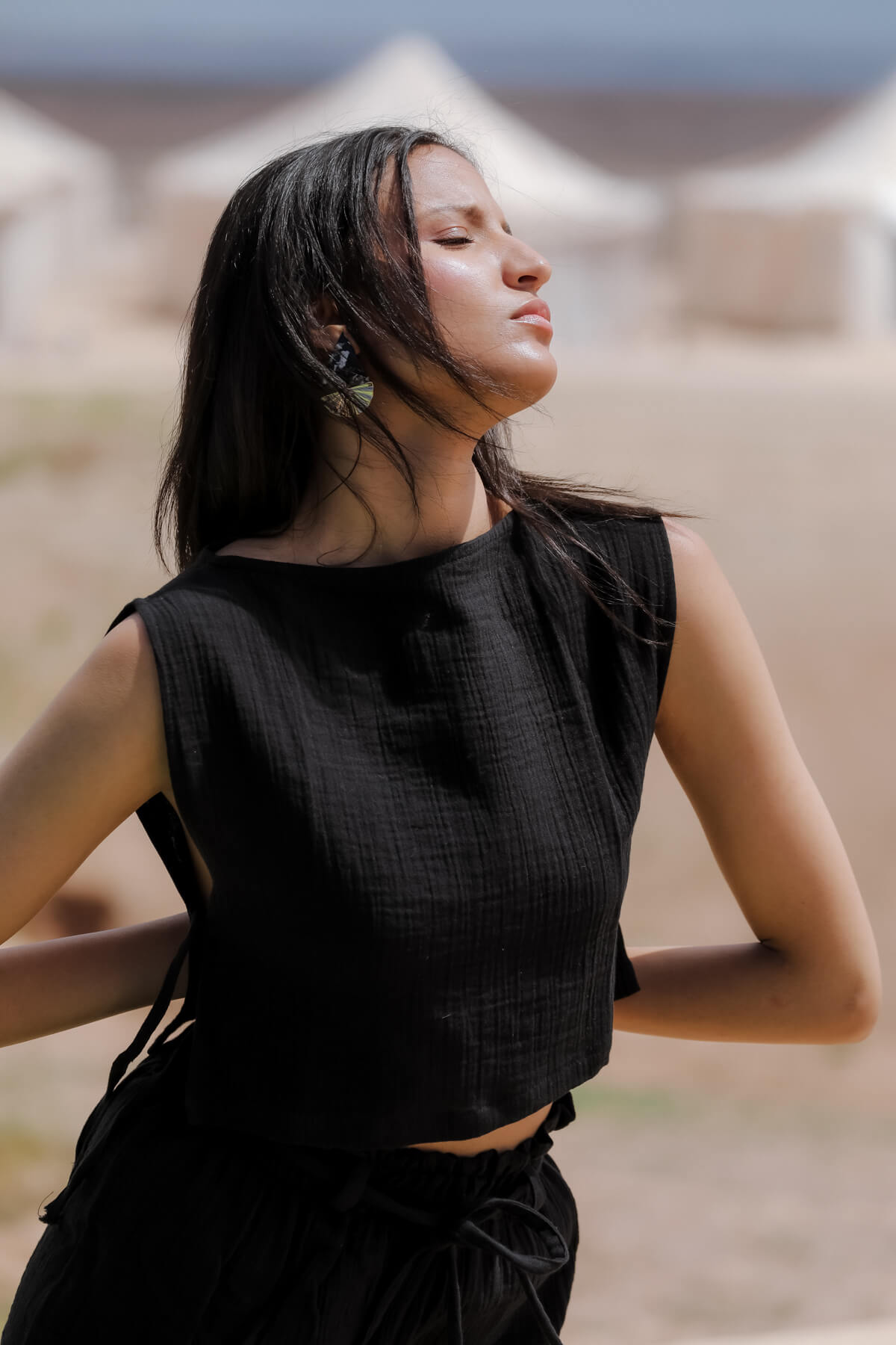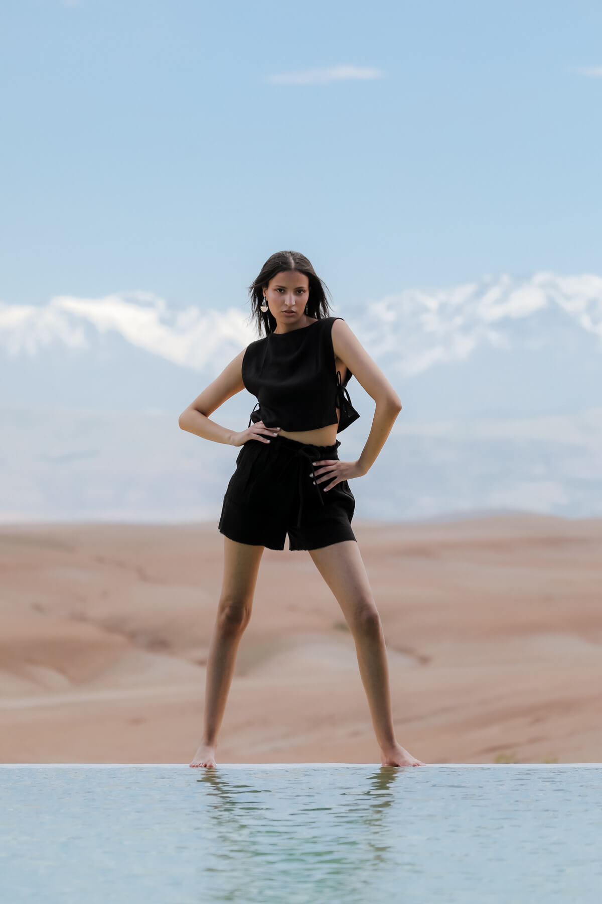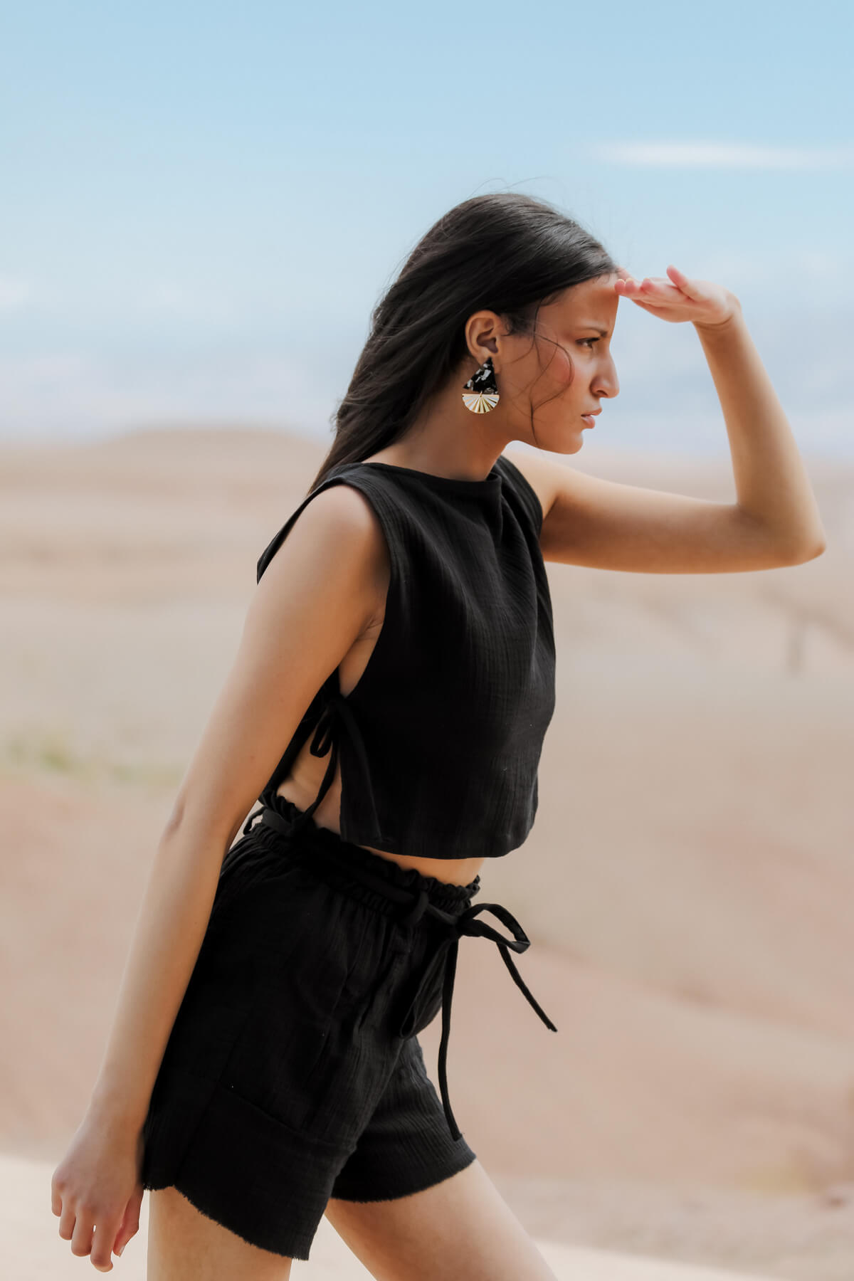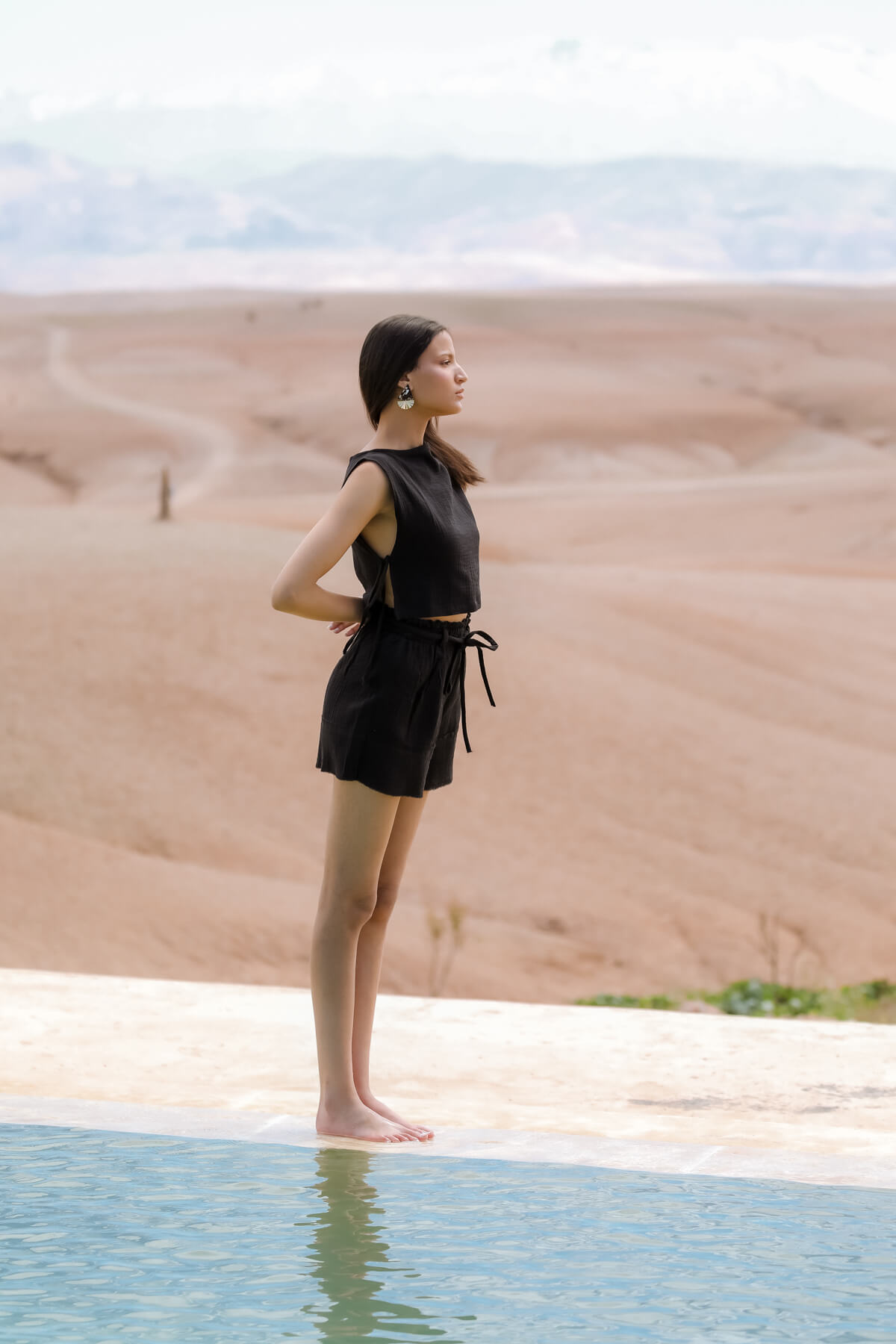 Marakeş'in büyülü atmosferini hissetmeye hazır mısınız? RABBA Pamuk Crop ve Şort Takımı ile serin ve konforlu bir yaz stili yaratabilirsiniz. Yumuşak %100 Pamuk kumaşın ferahlığını hissedin ve siyah renk ile zarif ve sade bir görünüm elde edin. Tasarımı ile şıklığınıza şıklık katarken, Agafay Çölü'nün büyüleyici havasıyla ruhunuza bir ziyafet çekin. RABBA Crop ve Şort Takımı, günlük hayatınızda ve özel günlerinizde keyifle kullanabileceğiniz mükemmel bir parçadır. JessyWell'in Marrakech Reverie SS24 koleksiyonunun bir parçası olan bu ürün ile "Özgür ol, kendin ol, doğayla uyum içinde ol." sloganını yaşayın.
