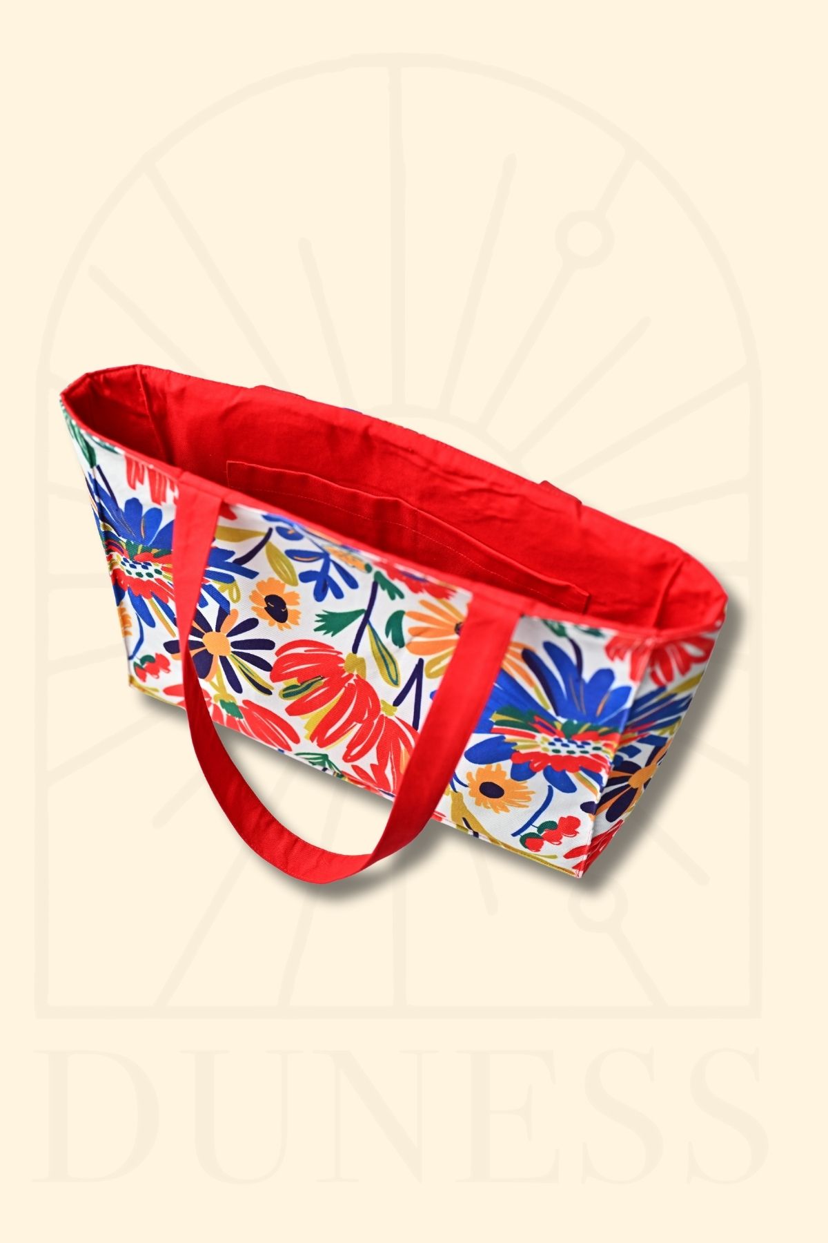 Dış yüzeyinde yer alan özel desenli pamuk kumaş, renkli ve enerjik bir görünüm sunarken; iç kısmındaki düz pamuk kumaş, doğal ve ferah bir iç dünya yaratır.